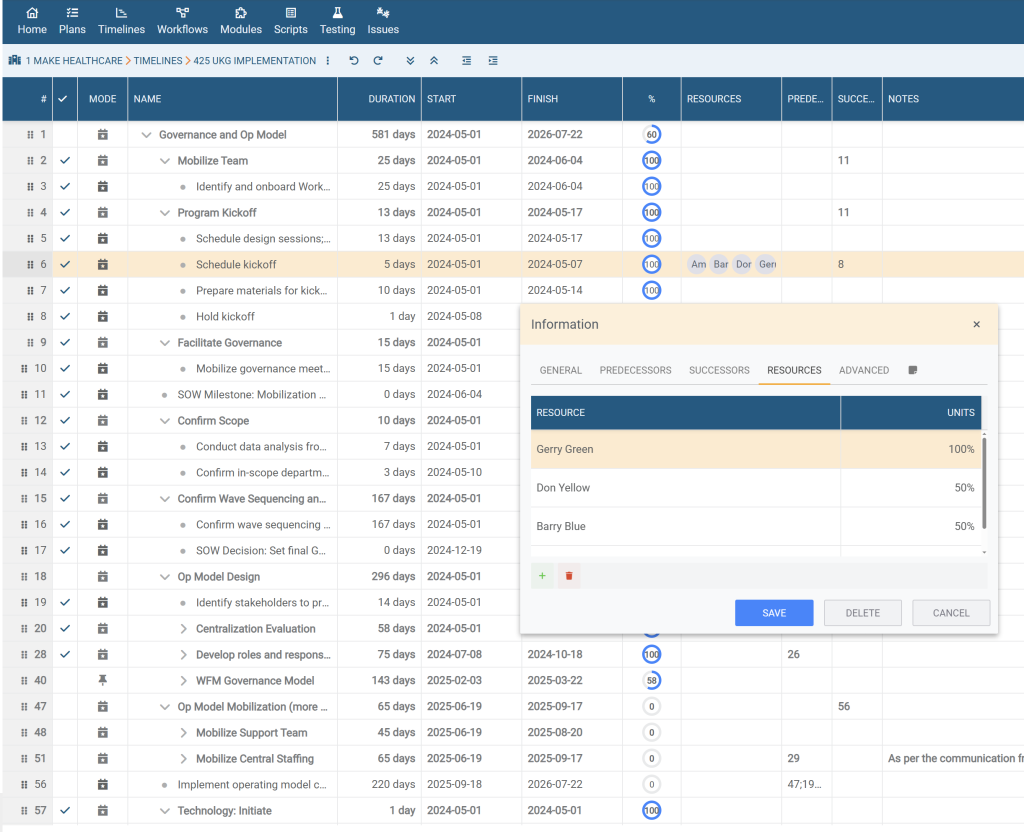 Use TransIT Timelines to establish and monitor project schedules with a visual Gantt by defining tasks, setting dates and durations, establishing dependencies, and allocating resources. Link tasks to the actual work delivered in TransIT Plans for data driven progress. Experience enhanced efficiency, achieve superior outcomes, and gain greater visibility into your projects.