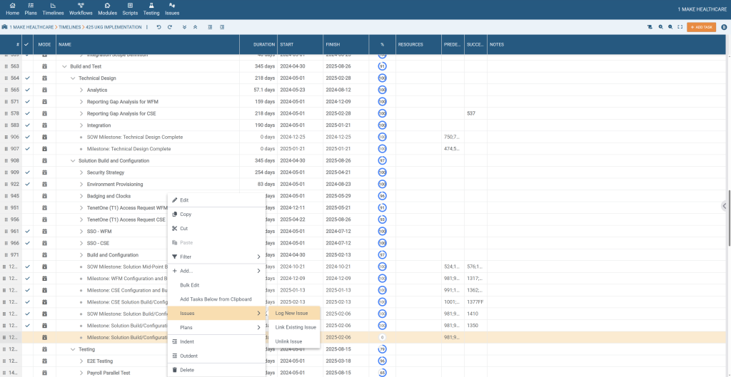 TransIT Timelines is designed for your teams, project schedule functions to simplify tracking of work tasks and coordinate project needs.
